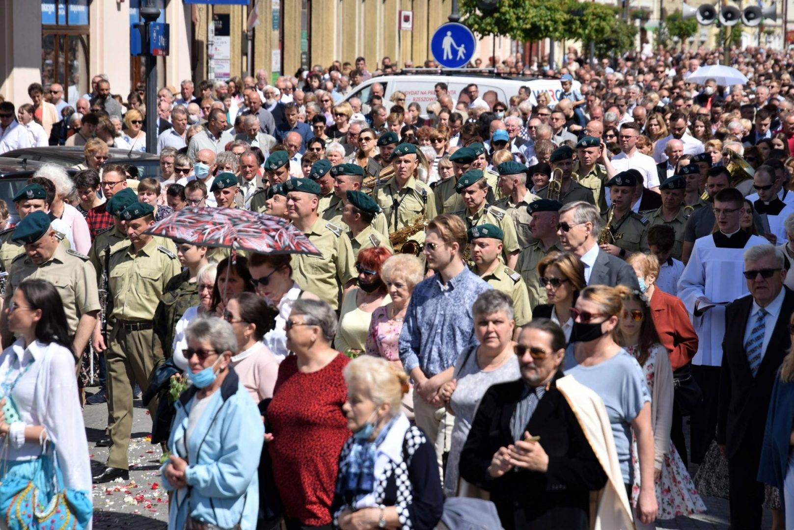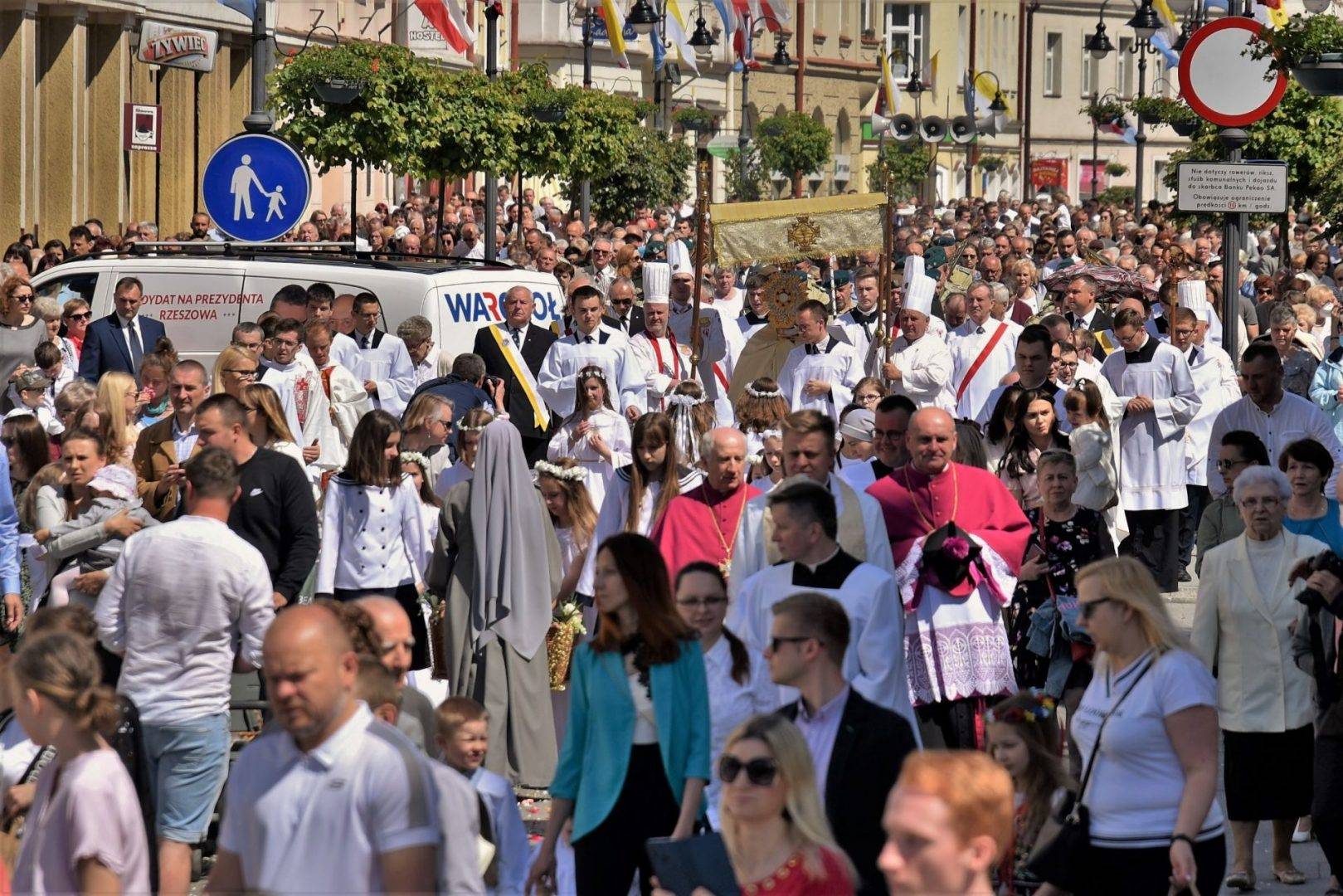Bp Jan Wątroba: „Wychodząc z Najświętszym Sakramentem poza świątynię, wyznajemy, że Chrystus w Eucharystii jest centrum naszego życia; jest ośrodkiem całej ludzkiej wędrówki przez ziemię do wiecznej ojczyzny”. Po Mszy Świętej na placu Farnym w Rzeszowie w Uroczystość Najświętszego Ciała i Krwi Chrystusa kilka tysięcy osób przeszło w procesji eucharystycznej ulicami śródmieścia.