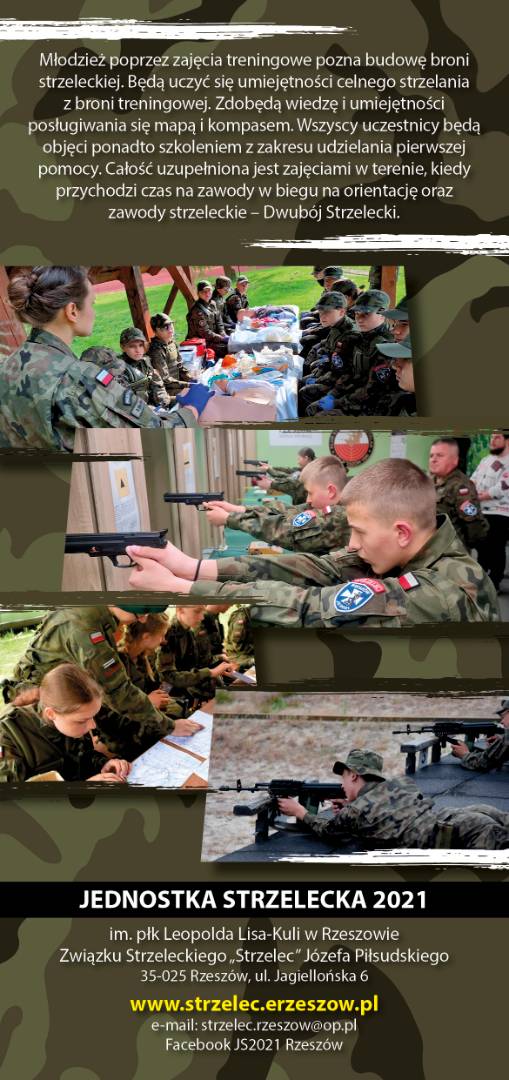 35-025 Rzeszów, ul. Jagiellońska 6 www.strzelec.erzeszow.pl; e-mail: strzelec.rzeszow@op.pl; Facebook JS2021 Rzeszów;