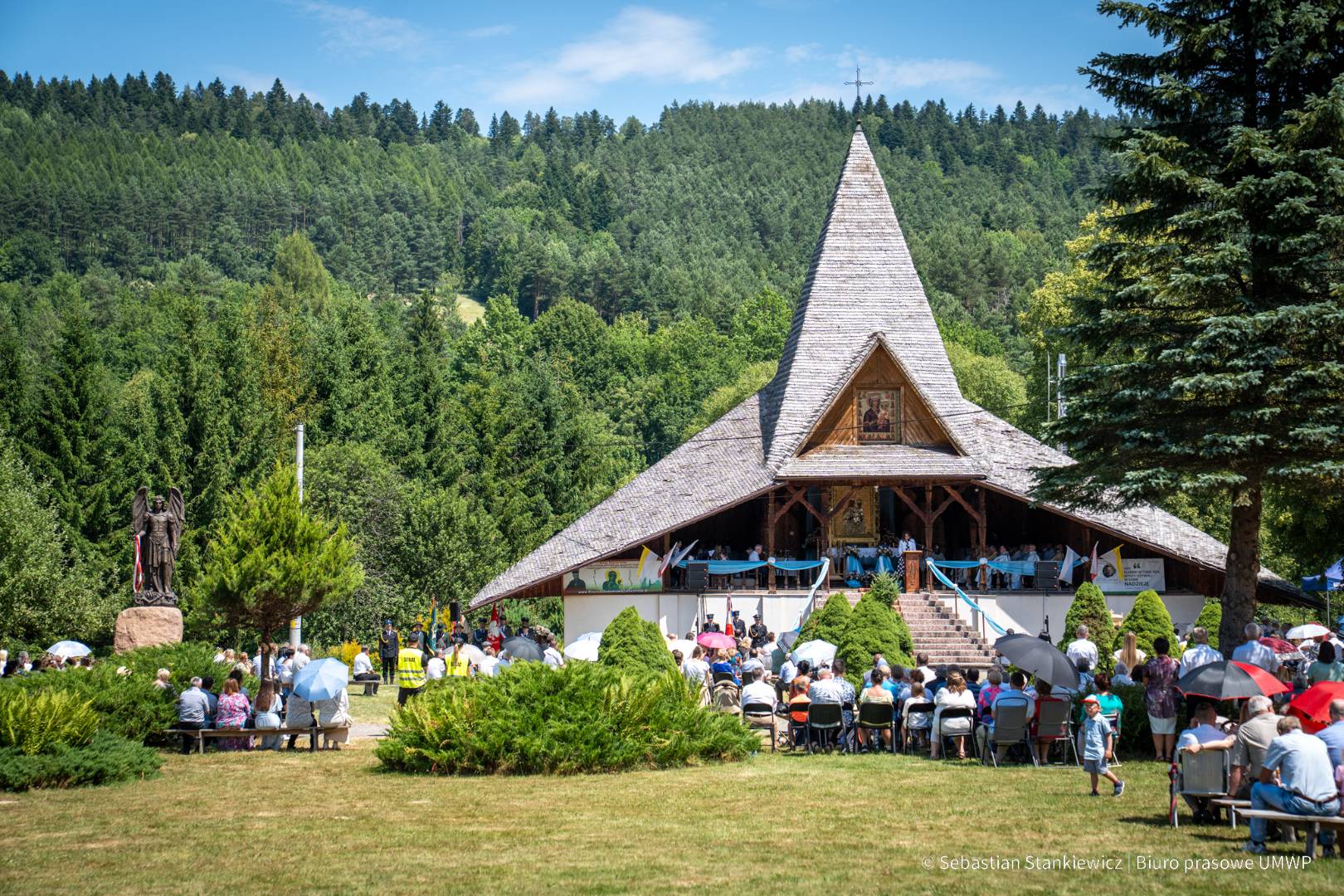 Na zaproszenie Pana Adama Pęzioła Prezesa Stowarzyszenie Ośrodek Myśli Prymasa Stefana Kardynała Wyszyńskiego w Komańczy – inicjator wydarzenia, Strzelcy z Rzeszowa i Kolbuszowej Jednostki Strzeleckiej 2021 im. płk. Leopolda Lisa-Kuli Związku Strzeleckiej „Strzelec” Józefa Piłsudskiego, wzięli udział w wyjątkowej uroczystości odsłonięcia i poświęcenia pomnika Świętego Michała Archanioła. Odsłonięcie figury świętego Archanioła połączone zostało z uroczystą mszą świętą, odprawioną w intencji pielgrzymów, mieszkańców Bieszczadów, czcicieli Matki Bożej Bieszczadzkiej oraz św. Michała Archanioła.