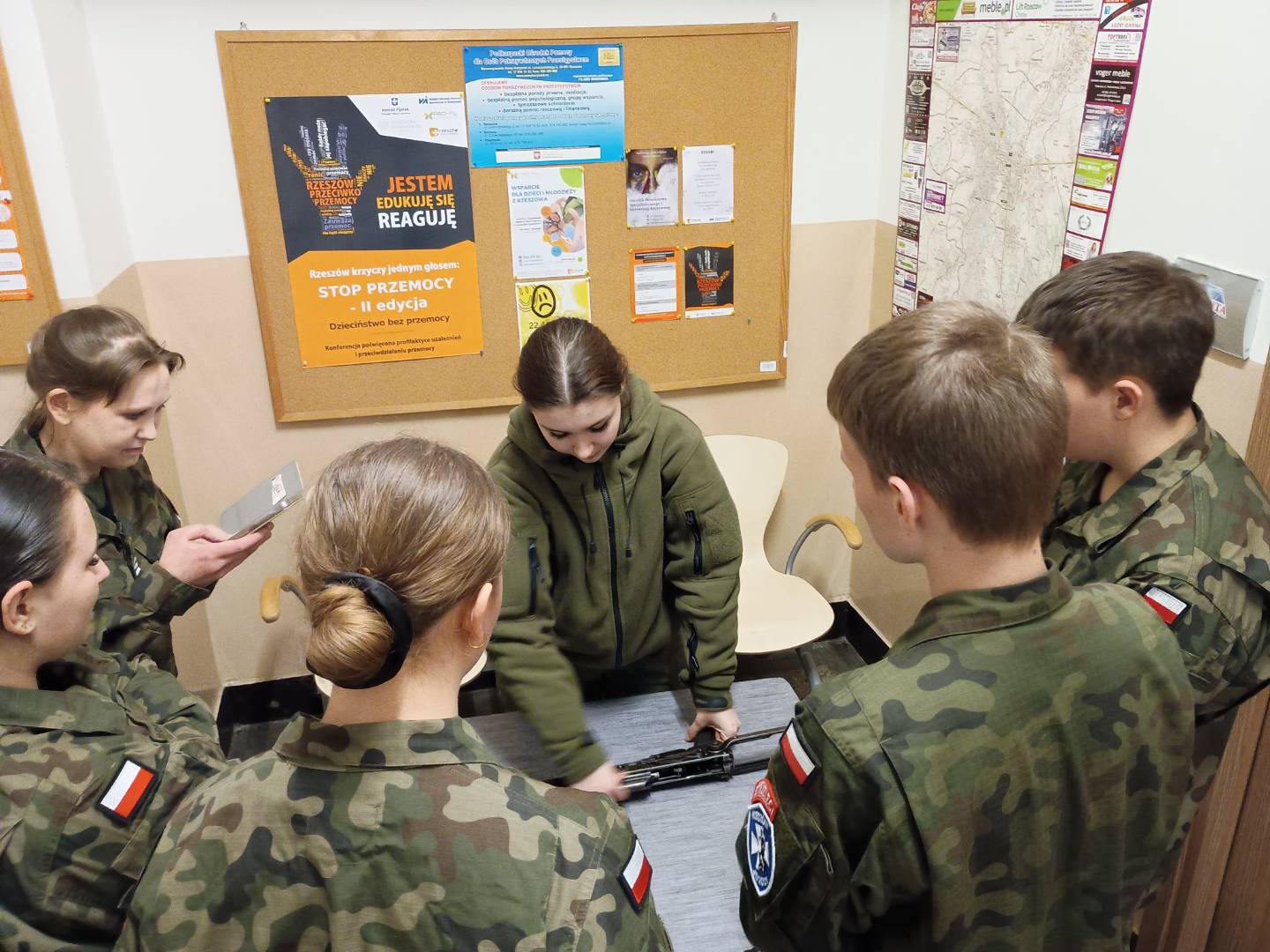 Zajęcia rozpoczęły się od krótkiego apelu. Następnie zostały przeprowadzone zajęcia programowe w poszczególnych plutonach. Było rozkładanie i składanie oraz budowa broni AKMS, zajęcia z łączności i topografii. Szkolenie prowadzili sprawdzeni, doświadczeni instruktorzy. Na zakończenie spotkania st. insp. ZS Barbara Gajewska – Dowódca JS 2021, podsumowała zajęcia.
