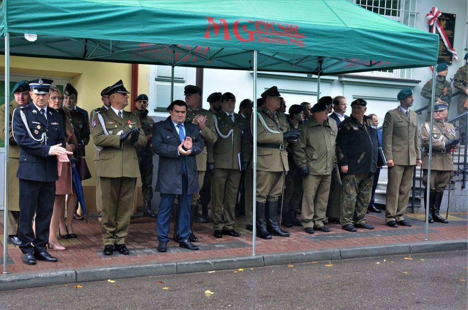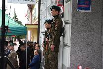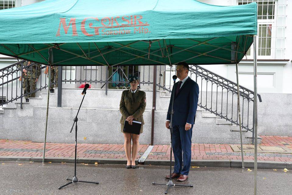 Po mszy w towarzystwie orkiestry nastąpił przemarsz pocztów sztandarowych, pododdziałów strzelców i orląt pod budynek banku, gdzie znajduje się tablica, upamiętniająca wymarsz sokołowskich strzelców w 1914 roku do formujących się legionów polskich. Na miejscu odbył się uroczysty apel. Dowódcą uroczystości był st. chor. ZS Dawid Majda a prowadzącą st. sierż. ZS Martyna Babula. Swoją obecnością zaszczycili nas: