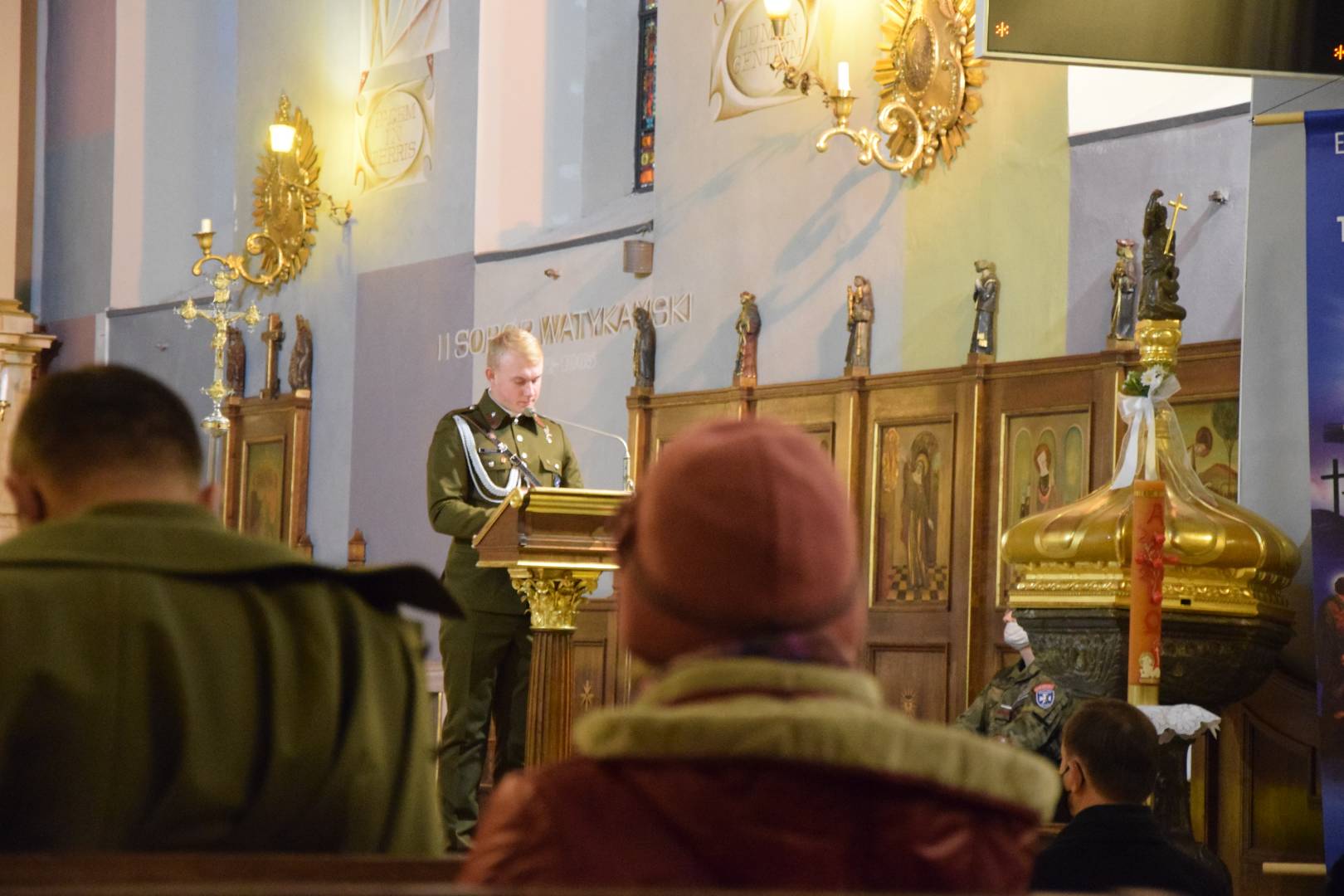 Następnie została odprawiona Uroczysta Msza Święta w kościele farnym pod przewodnictwem ks. prałata Jana Szczupaka, który wygłosił okolicznościowe kazanie. Ofiarę Mszy Św. za Ojczyznę sprawował w koncelebrze Kapelan „Orląt” ZS JS 2021 ks. st. chor. ZS Bogdan Tęcza. Nasi Strzelcy tworzyli służbę liturgiczną w składzie: chor. ZS Katarzyna Noga, chor. ZS Piotr Szeniak, st. strz. ZS Hubert Biały.