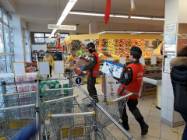 W sklepie Frac przy ul. Kochanowskiego w Rzeszowie dzięki zaangażowaniu naszej młodzieży strzeleckiej oraz kadry udało się zebrać dużą ilość potrzebnych konserw, makaronów, ryżu, oleju, płatków, kawy, herbaty, słodyczy dla dzieci, itp.