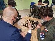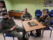 "Istota szachów sprowadza się do tego, by zgodnie ze wskazówkami mędrców o zwycięstwie decydowała siła umysłu"W poniedziałek 22 marca br na świetlicy strzeleckiej rozpoczęły się zajęcia szachowe, na których strzelcy poznawali tajniki gry w szachy. Zajęcia szachowe prowadził st.chor. ZS Artur Bubicz.
