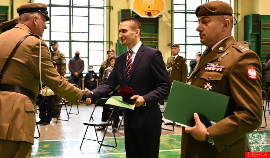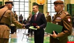 Uroczystość stała się także okazją, aby podziękować ppłk Rolandowi Waszkowiakowi za tworzenie i prowadzenie w Dębicy 33. Batalionu Lekkiej Piechoty. Z rąk Macieja Małozięcia odebrał grawerton i figurę św. Jadwigi patronki miasta. – Dziękuję Dębico – powiedział Podpułkownik na zakończenie swojego wystąpienia.