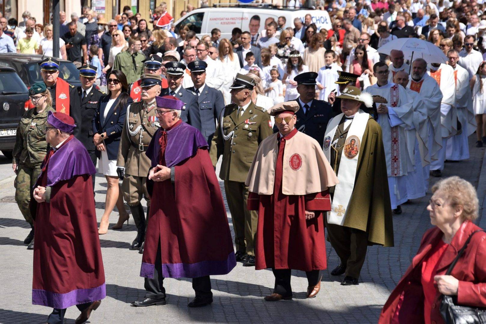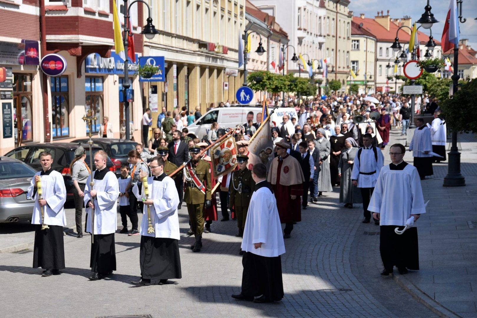 Bp Jan Wątroba: „Wychodząc z Najświętszym Sakramentem poza świątynię, wyznajemy, że Chrystus w Eucharystii jest centrum naszego życia; jest ośrodkiem całej ludzkiej wędrówki przez ziemię do wiecznej ojczyzny”. Po Mszy Świętej na placu Farnym w Rzeszowie w Uroczystość Najświętszego Ciała i Krwi Chrystusa kilka tysięcy osób przeszło w procesji eucharystycznej ulicami śródmieścia.