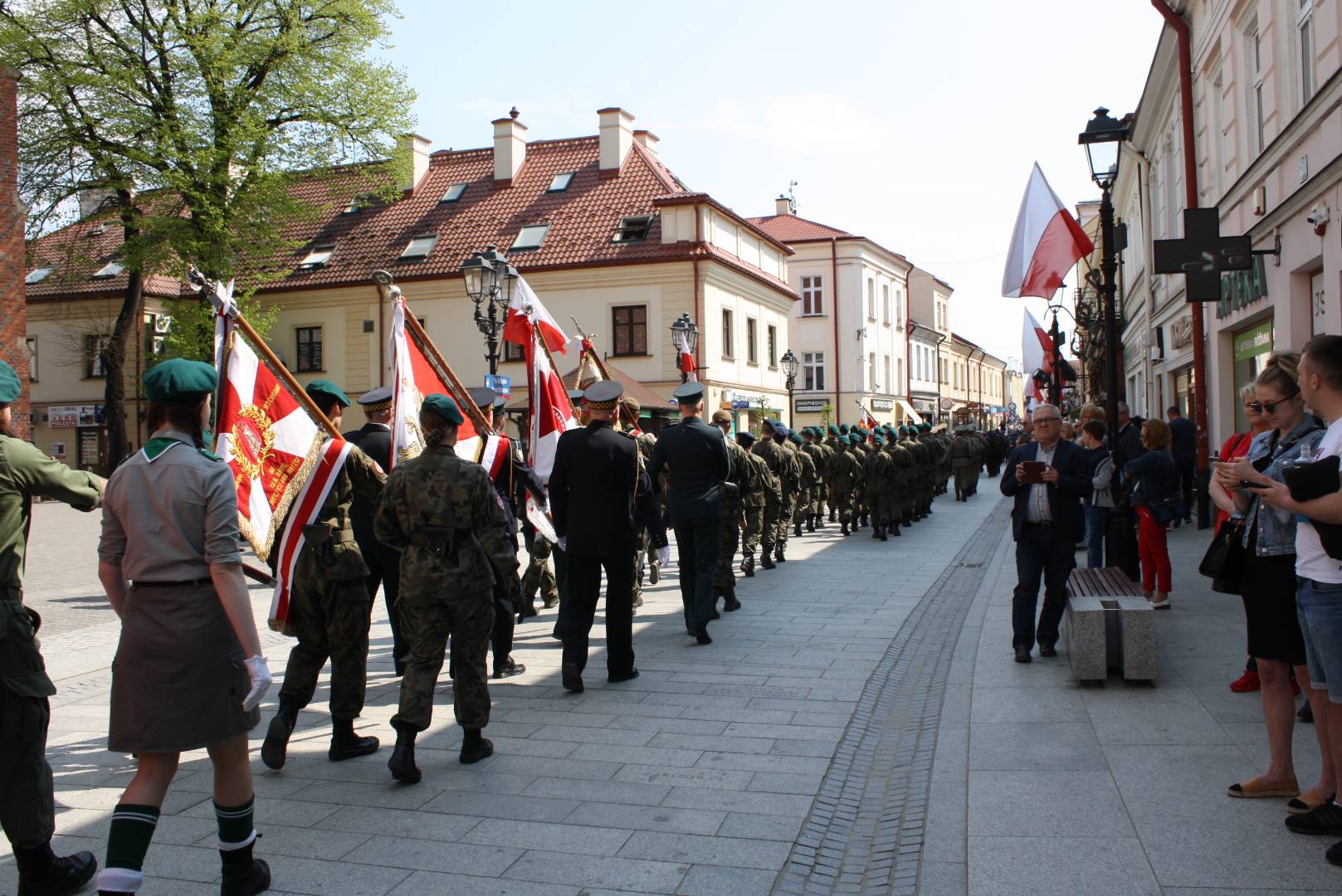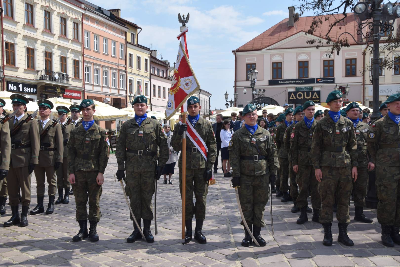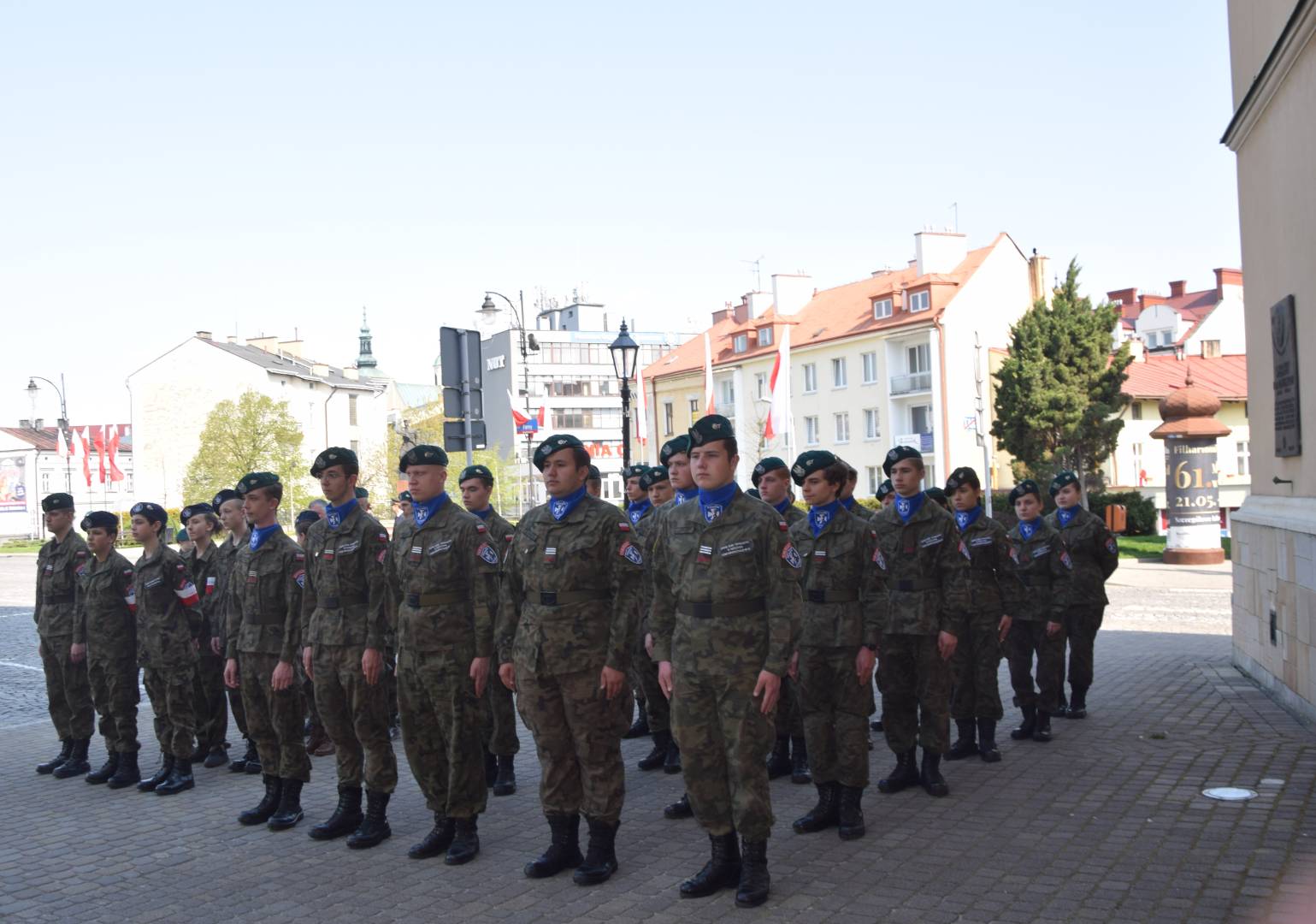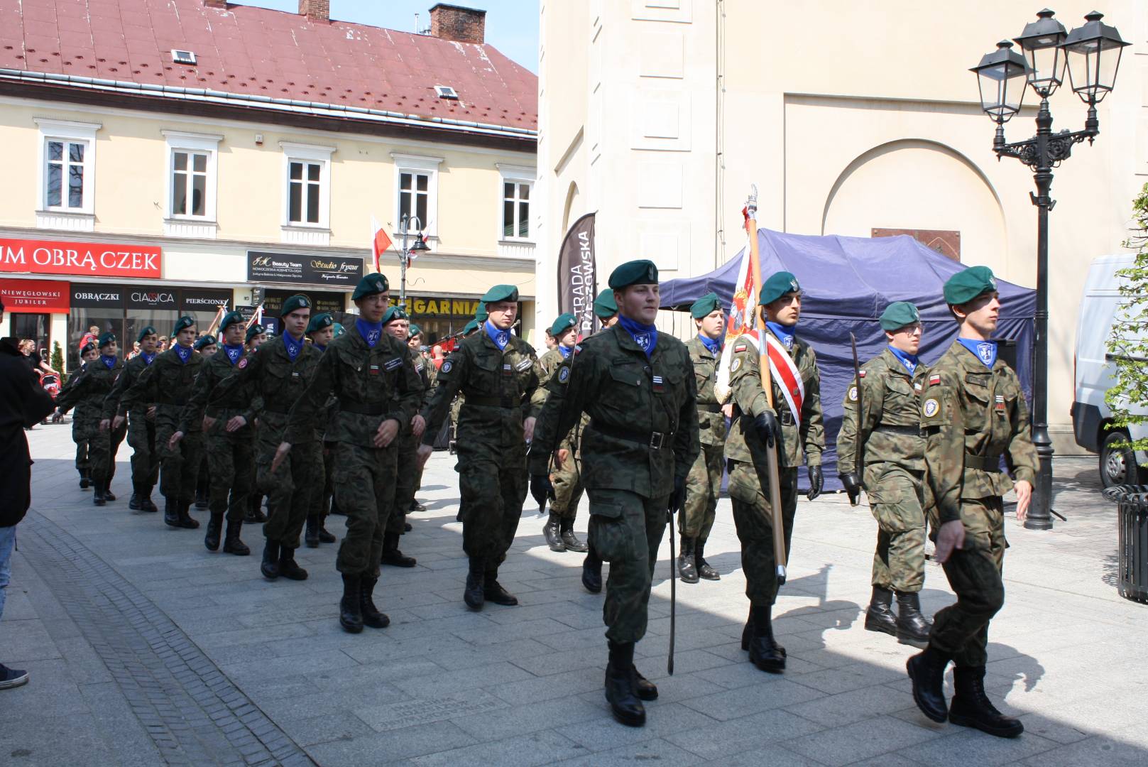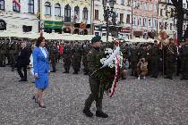 Po nabożeństwie w zwartym szyku pomaszerowali sprężystym krokiem na rynek, gdzie przed pomnikiem gen. Tadeusza Kościuszki wzięli udział w uroczystym apelu. Swoją obecnością uczcili pamięć jednego z największych wydarzeń w dziejach polskich. Oddali hołd patriotom, którzy 9 pokoleń wcześniej odważyli się być mądrzy i uchwalili Ustawę Rządową czyniącą z Polski jedno z najnowocześniejszych państw na świecie. Udział strzelców w apelu świadczy o ich patriotyzmie oraz szacunku dla przodków, którzy pozostawili w testamencie zadanie realizacji hasła SALUS REI PUBLICAE SUPREMA LEX (Dobro Rzeczypospolitej najwyższym prawem).