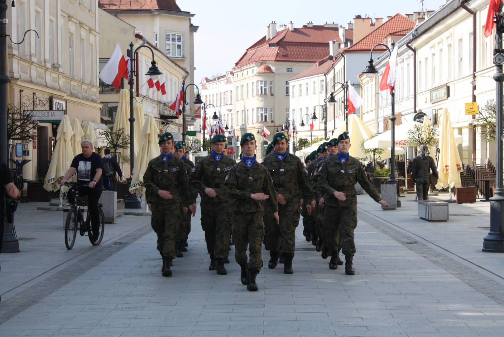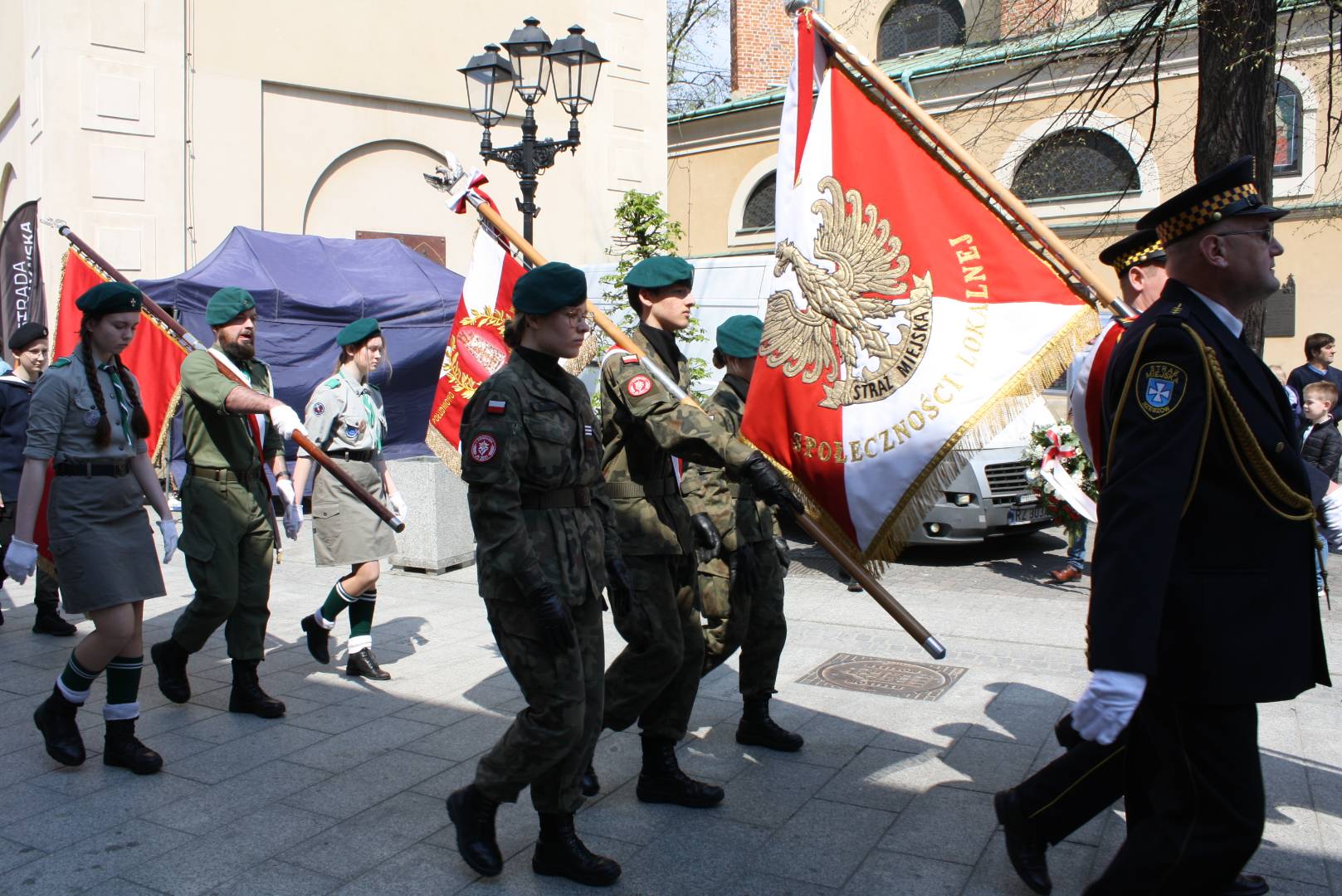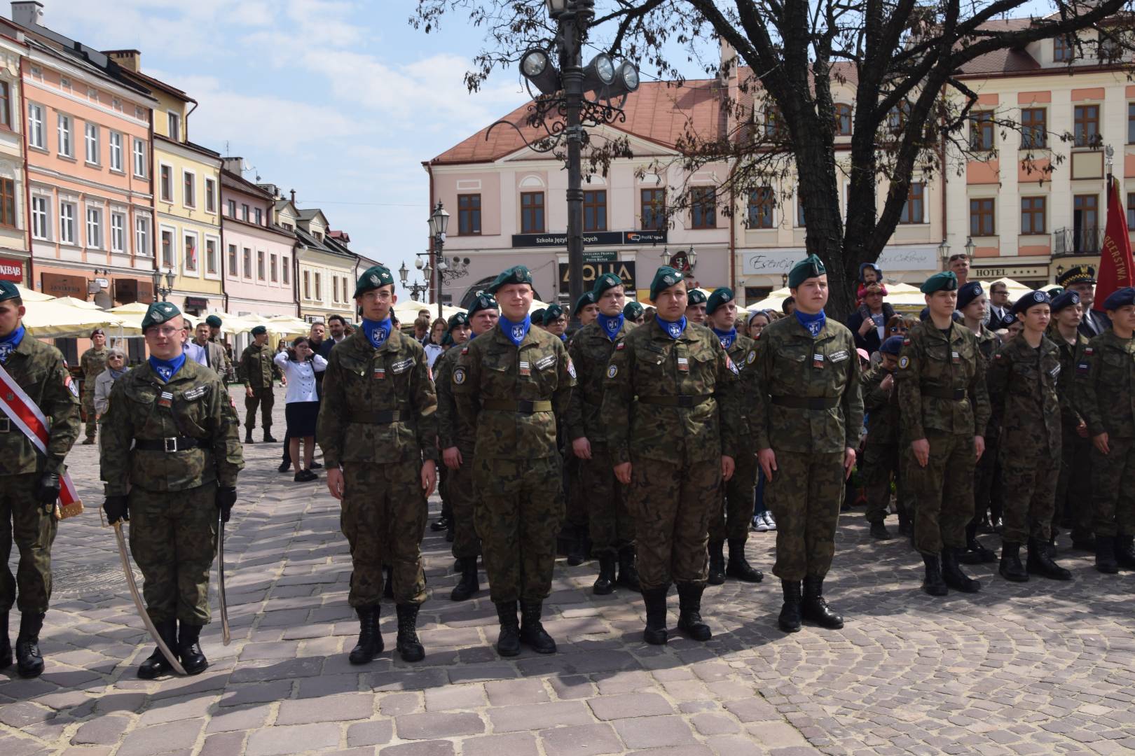 Po nabożeństwie w zwartym szyku pomaszerowali sprężystym krokiem na rynek, gdzie przed pomnikiem gen. Tadeusza Kościuszki wzięli udział w uroczystym apelu. Swoją obecnością uczcili pamięć jednego z największych wydarzeń w dziejach polskich. Oddali hołd patriotom, którzy 9 pokoleń wcześniej odważyli się być mądrzy i uchwalili Ustawę Rządową czyniącą z Polski jedno z najnowocześniejszych państw na świecie. Udział strzelców w apelu świadczy o ich patriotyzmie oraz szacunku dla przodków, którzy pozostawili w testamencie zadanie realizacji hasła SALUS REI PUBLICAE SUPREMA LEX (Dobro Rzeczypospolitej najwyższym prawem).