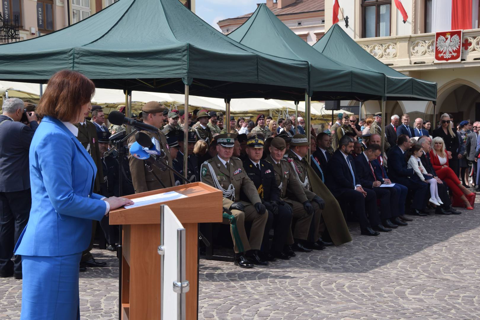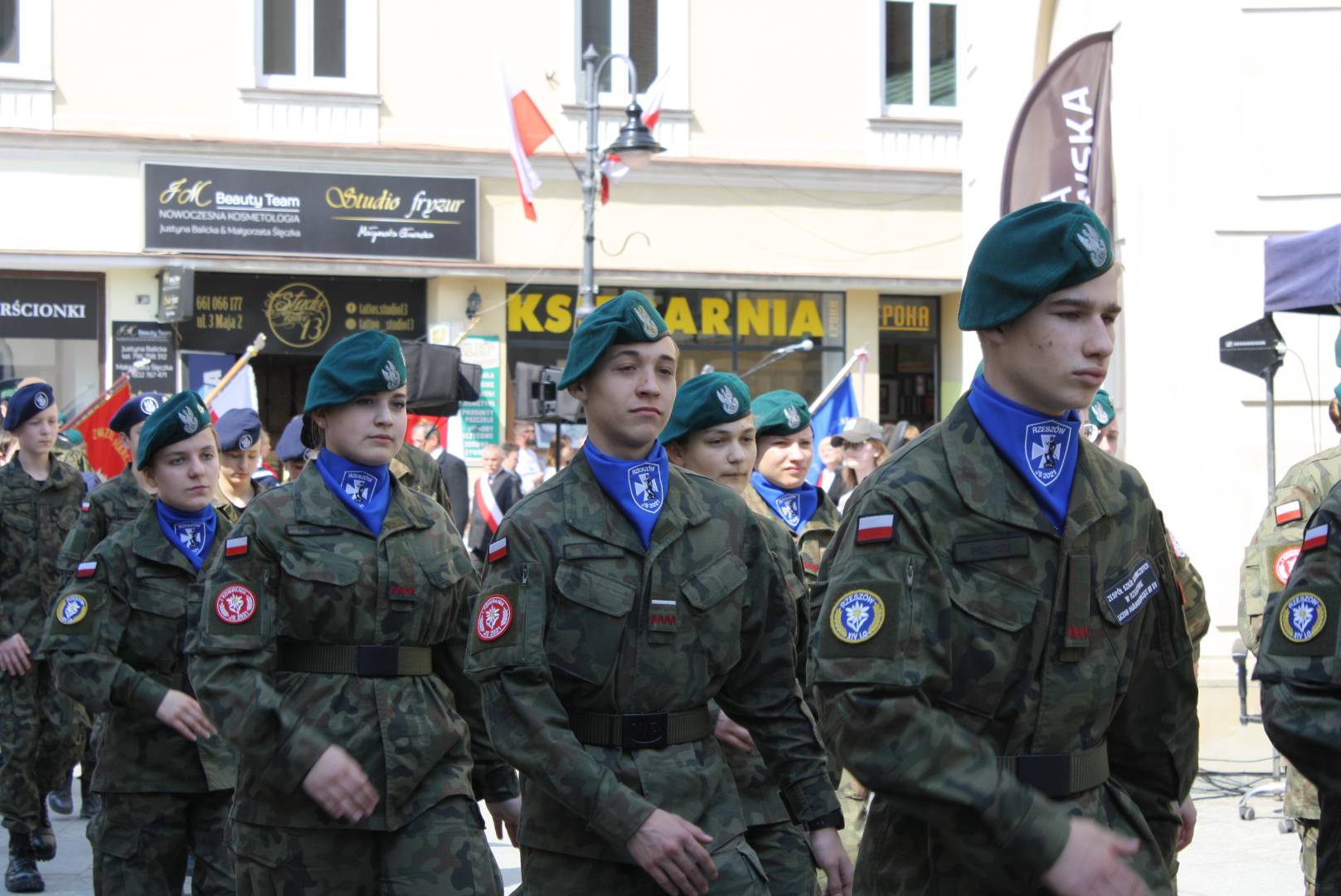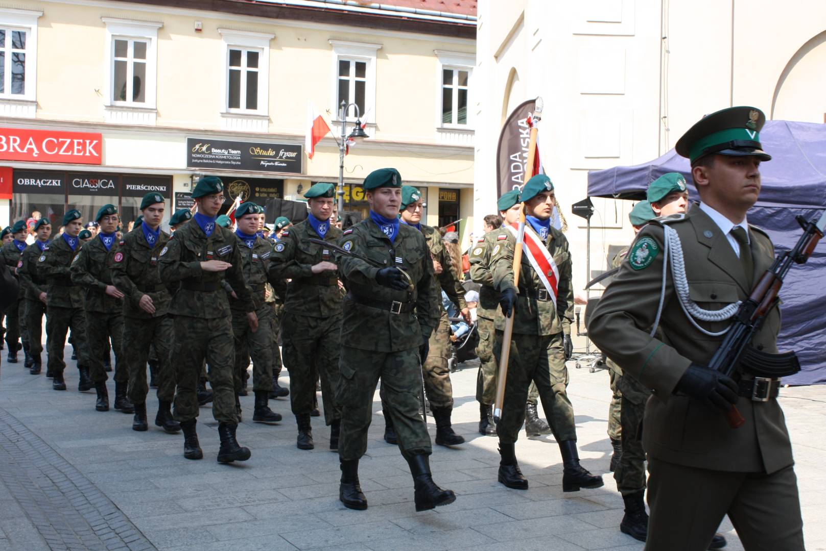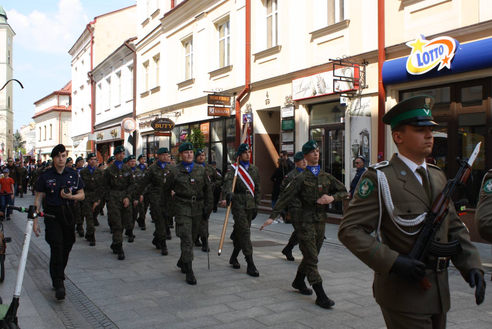 Po nabożeństwie w zwartym szyku pomaszerowali sprężystym krokiem na rynek, gdzie przed pomnikiem gen. Tadeusza Kościuszki wzięli udział w uroczystym apelu. Swoją obecnością uczcili pamięć jednego z największych wydarzeń w dziejach polskich. Oddali hołd patriotom, którzy 9 pokoleń wcześniej odważyli się być mądrzy i uchwalili Ustawę Rządową czyniącą z Polski jedno z najnowocześniejszych państw na świecie. Udział strzelców w apelu świadczy o ich patriotyzmie oraz szacunku dla przodków, którzy pozostawili w testamencie zadanie realizacji hasła SALUS REI PUBLICAE SUPREMA LEX (Dobro Rzeczypospolitej najwyższym prawem).