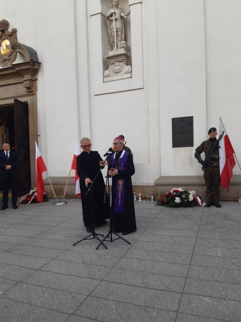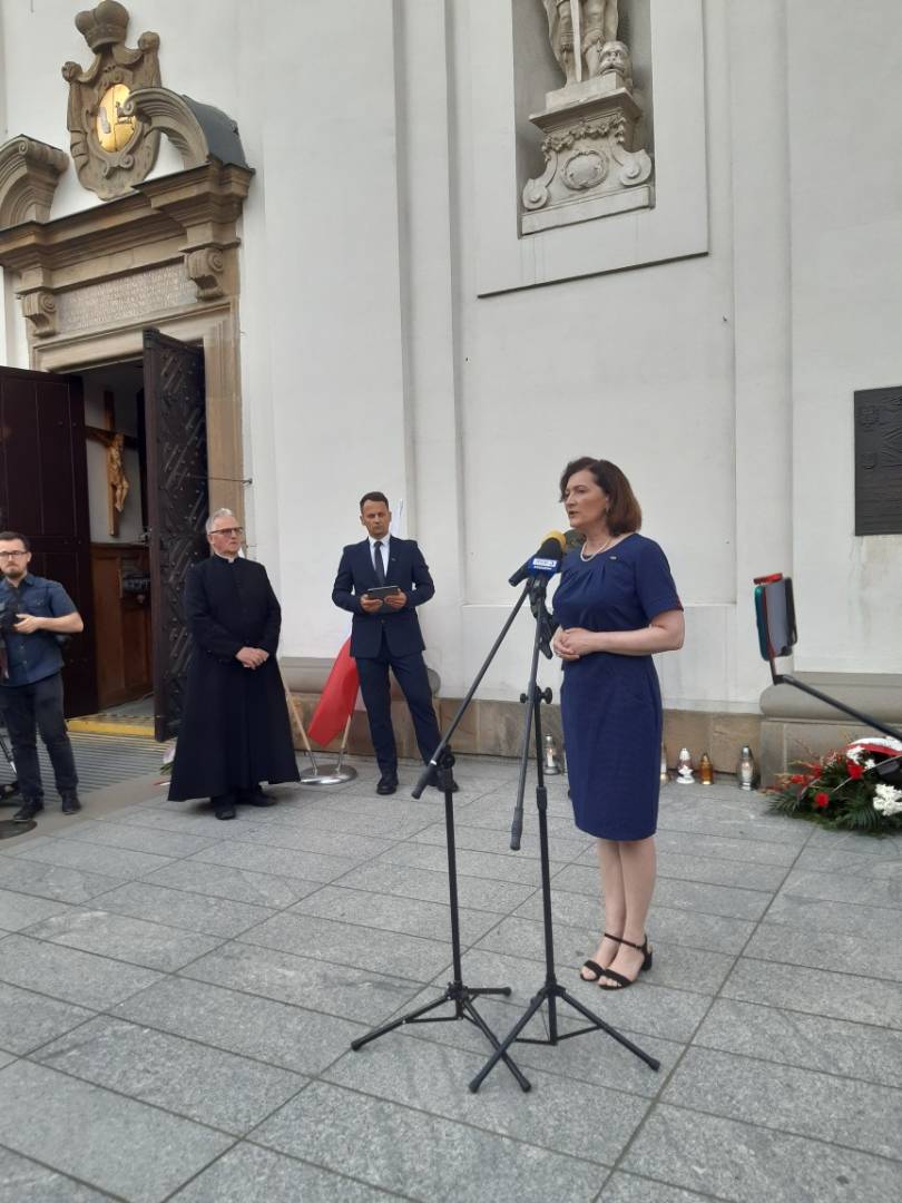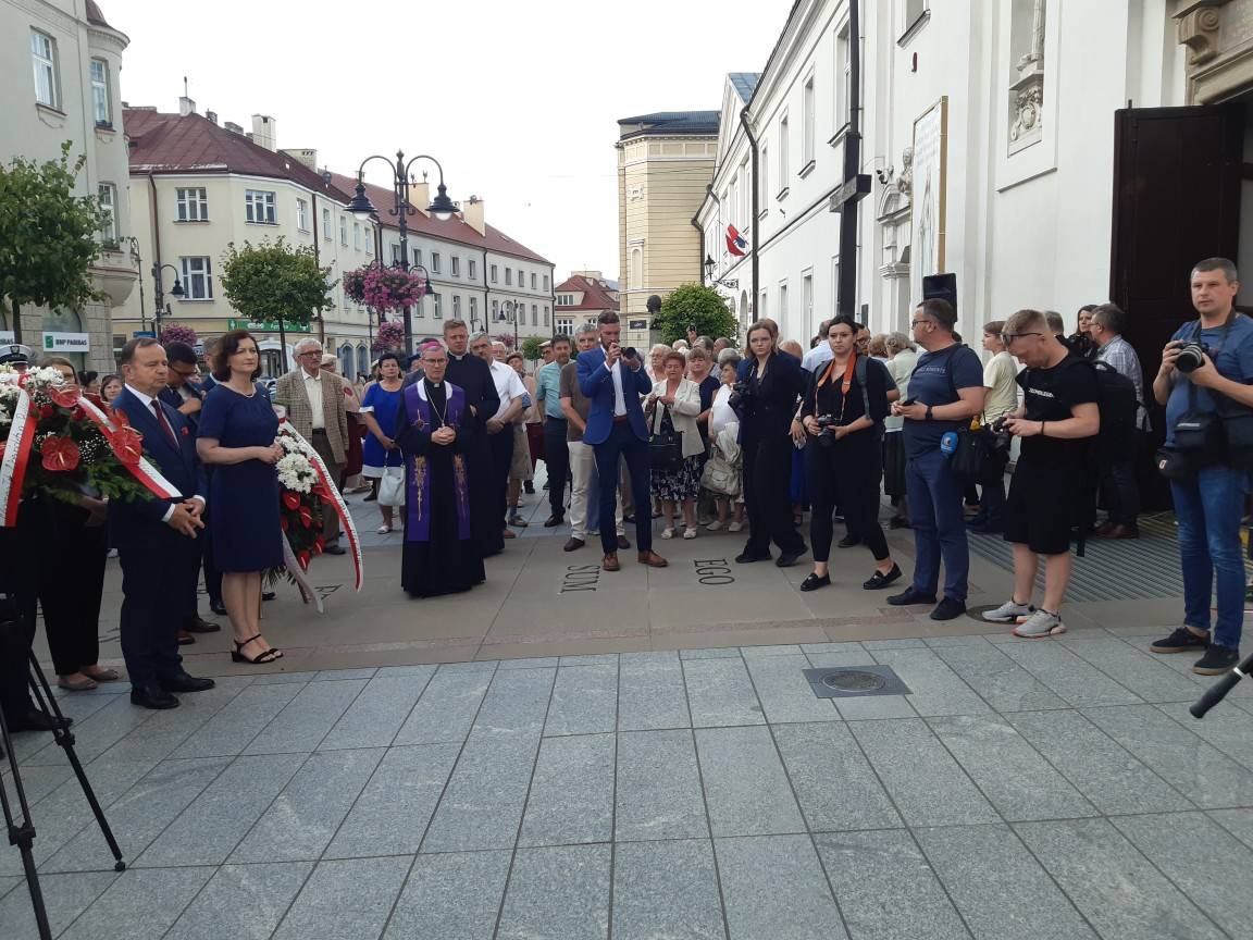 Po eucharystii wierni wypełnili plac przed rzeczoną świątynią. Warto nadmienić, że na jednej z jej ścian znajduje się tablica upamiętniająca ofiary okrucieństwa dokonanego na kresach przez wspomnianych oprawców. Przy niej postawili wartę żołnierze 21 brygady Strzelców Podhalańskich. Tam też odbyła się druga część uroczystości. Podczas niej okolicznościowe przemówienia wygłosili: wojewoda podkarpacki – pani doktor Ewa Leniart, marszałek województwa podkarpackiego – pan Władysław Ortyl, a także dyrektor rzeszowskiego oddziału Instytutu Pamięci Narodowej – pan doktor habilitowany Dariusz Iwaneczko. Zwrócili oni uwagę na znaczenie właściwego wykorzystania trudnej lekcji historii, jaką była „rzeź wołyńska” dla dobrego ułożenia relacji polsko-ukraińskich, co w obecnych czasach jest niezwykle istotne. Kwintesencję tej części uroczystości stanowiła modlitwa za pomordowanych. Zgromadzeni odmówili ją pod przewodnictwem ks. bpa. Jana Wątroby. Po tym delegacje złożyły przy tablicy wieńce. Ta ceremonia zakończyła rzeszowskie obchody 80-tej rocznicy „rzezi wołyńskiej”. Uczestniczyły w niej delegacje duchowieństwa diecezji rzeszowskiej, władz państwowych, samorządowych, poselstwa do Parlamentu Europejskiego, służb mundurowych i NSZZ „Solidarność”. Nie zabrakło na obchodach reprezentacji Związku Strzeleckiego „STRZELEC” Józefa Piłsudskiego. Przybyła ona na nie pod dowództwem Komendanta Głównego ZS „S” JP – brygadiera Marka Matuły. Wraz z nim obecni byli na nabożeństwie i apelu: dowódca Południowo-Wschodniego Okręgu Strzeleckiego - starszy inspektor ZS „S” JP Marek Strączek, dowódca Jednostki Strzeleckiej 2021 im. płk. Leopolda Lisa-Kuli w Rzeszowie – inspektor ZS „S” JP Barbara Gajewska, młodszy inspektor ZS „S” JP Grzegorz Gajewski i młodszy inspektor ZS „S” JP Paweł Rejman. Strzelcy wystawili poczet sztandarowy pod komendą sierżanta ZS „S” JP Patryka Kielara. Skład licznej grupy strzelców uzupełniała kompania honorowa dowodzona przez chorążego ZS „S” JP Michała Urmana.