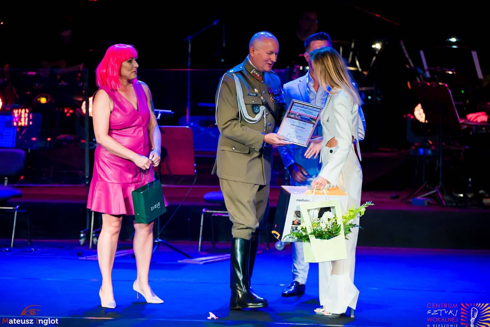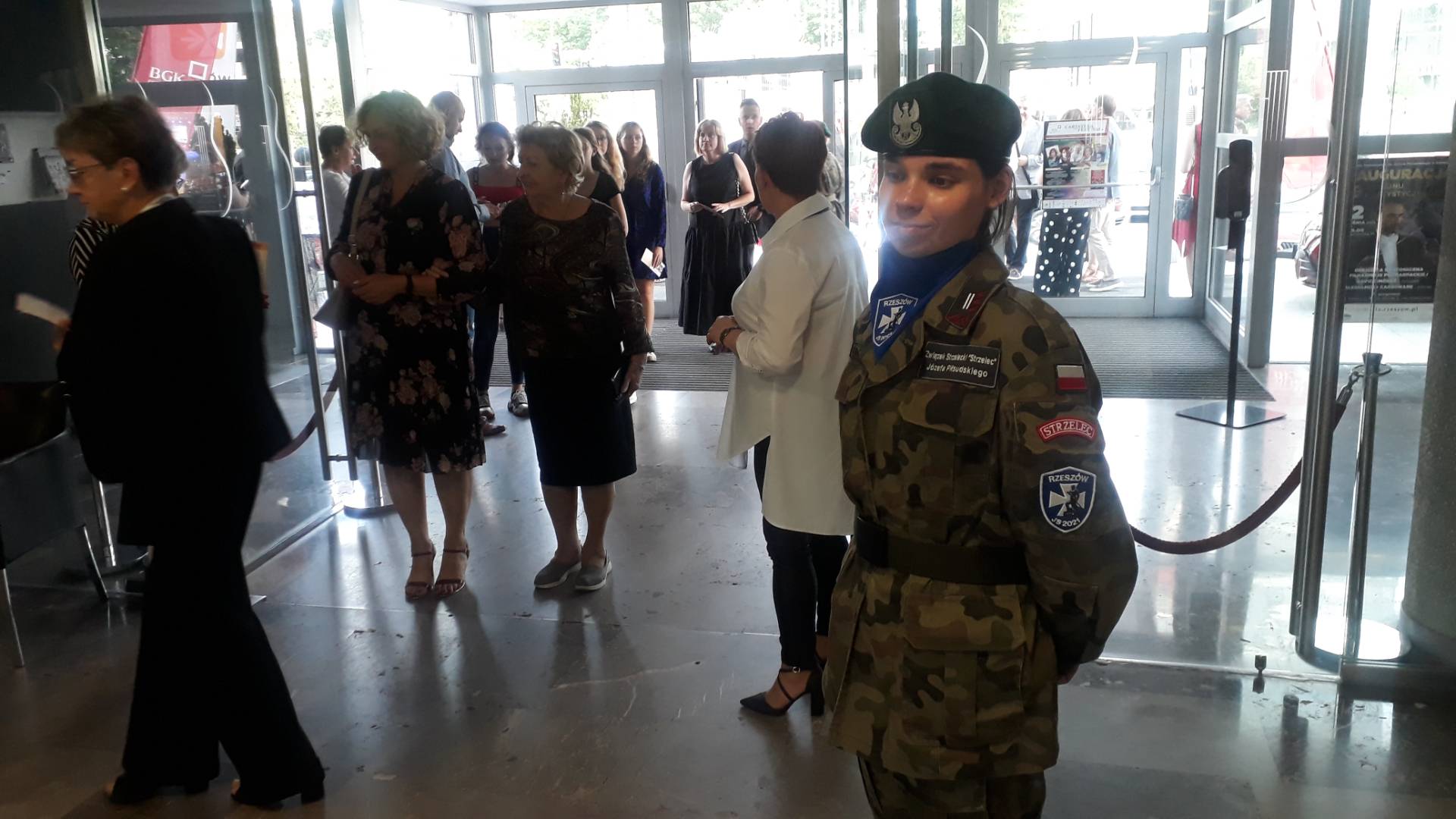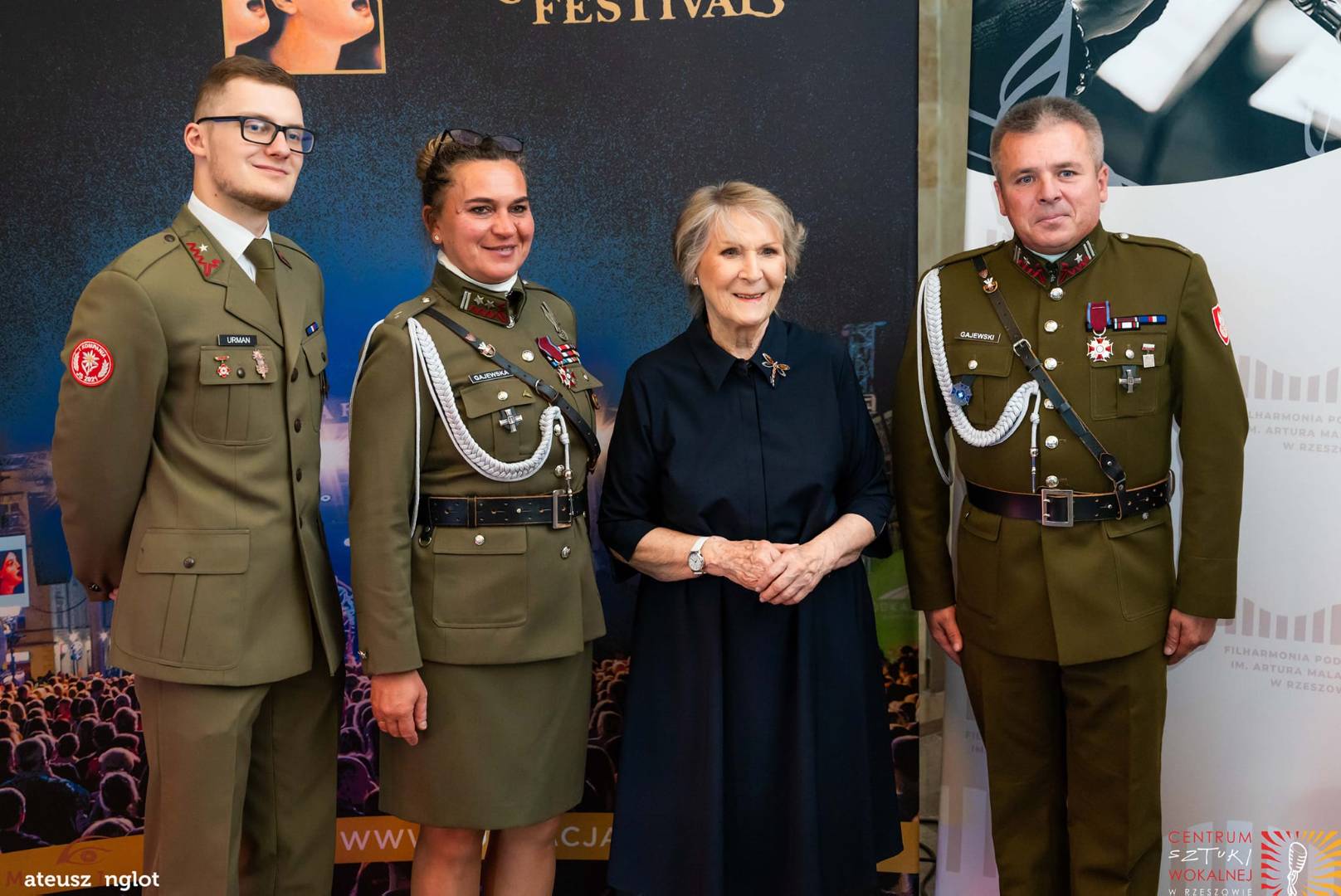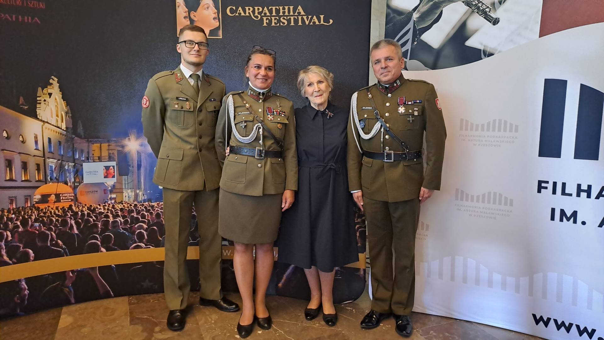 A co wspólnego mieli z tym strzelcy Związku Piłsudskiego „STRZELEC” Józefa Piłsudskiego? Bardzo wiele. Młodzież strzelecka z Jednostki Strzeleckiej 2021 im. płk. Leopolda-Lisa Kuli w Rzeszowie wsparła przedsięwzięcie pracami organizacyjnymi. Strzelcy pomagali muzykom dostarczyć instrumenty na scenę. Przynosili dla nich posiłki. W trakcie koncertów strzegli bezpieczeństwa osób obecnych w filharmonii. Występy artystów oglądali przedstawiciele dowództwa ZS „S” JP. Byli to państwo: Komendant Główny ZS „S” JP – brygadier Marek Matuła, dowódca Płd.- Wsch. Okręgu Strzeleckiego ZS „S” JP – starszy inspektor Marek Strączek, dowódca JS 2021 – inspektor Barbara Gajewska, młodszy inspektor ZS „S” JP Grzegorz Gajewski i młodszy inspektor ZS „S” JP Paweł Rejman. Warto nadmienić, że starszy inspektor Marek Strączek dostąpił zaszczytu wręczenia nagrody dla jednej z uczestniczek festiwalu – pani Anny Federowicz. Odnośnie zaangażowania strzelców to nie koniec. Po niedzielnym koncercie stanowiącym hołd dla pani Ireny Santor towarzyszył artystce chorąży ZS „S” JP Michał Urman. Przy okazji opowiedział on pani Irenie o działalności „STRZELCA”. Wreszcie logo formacji pokazano podczas prezentacji darczyńców i sponsorów imprezy.