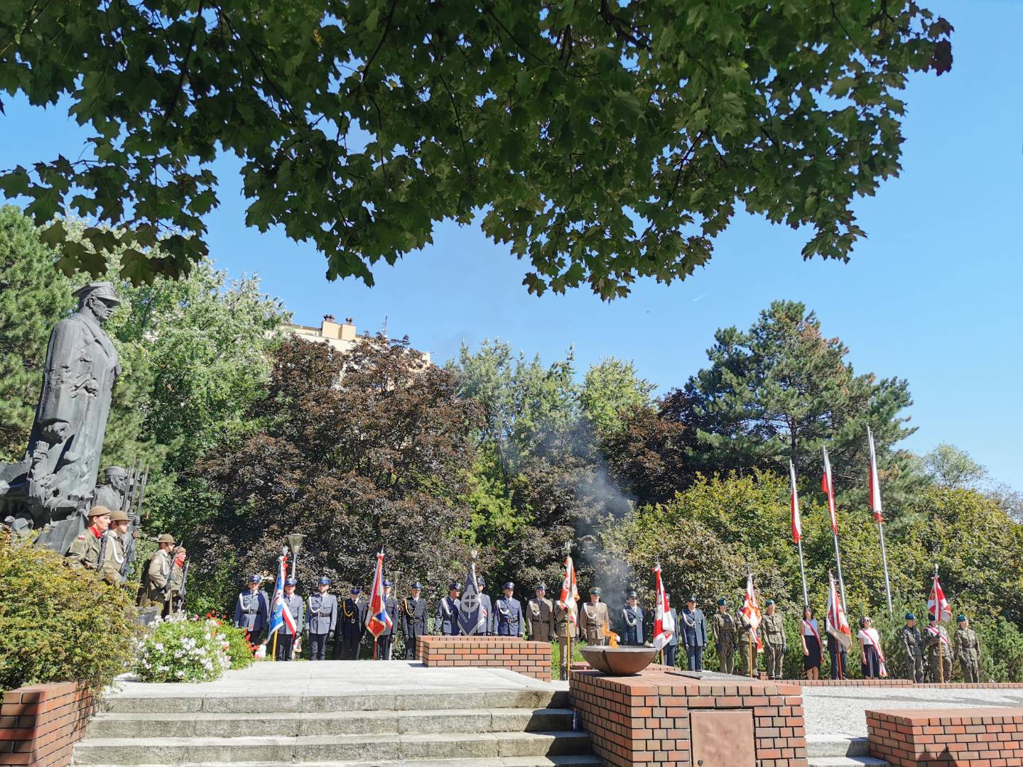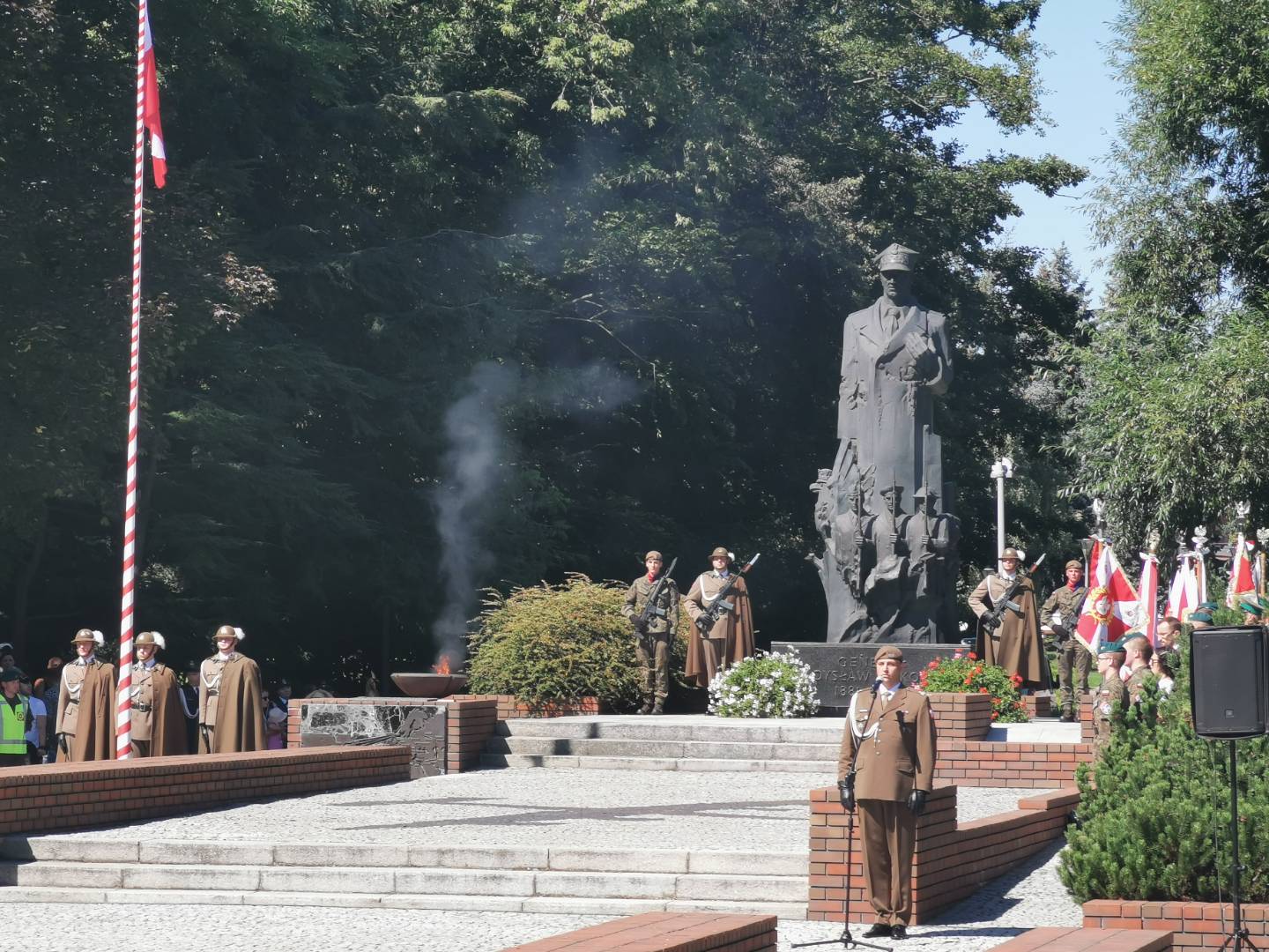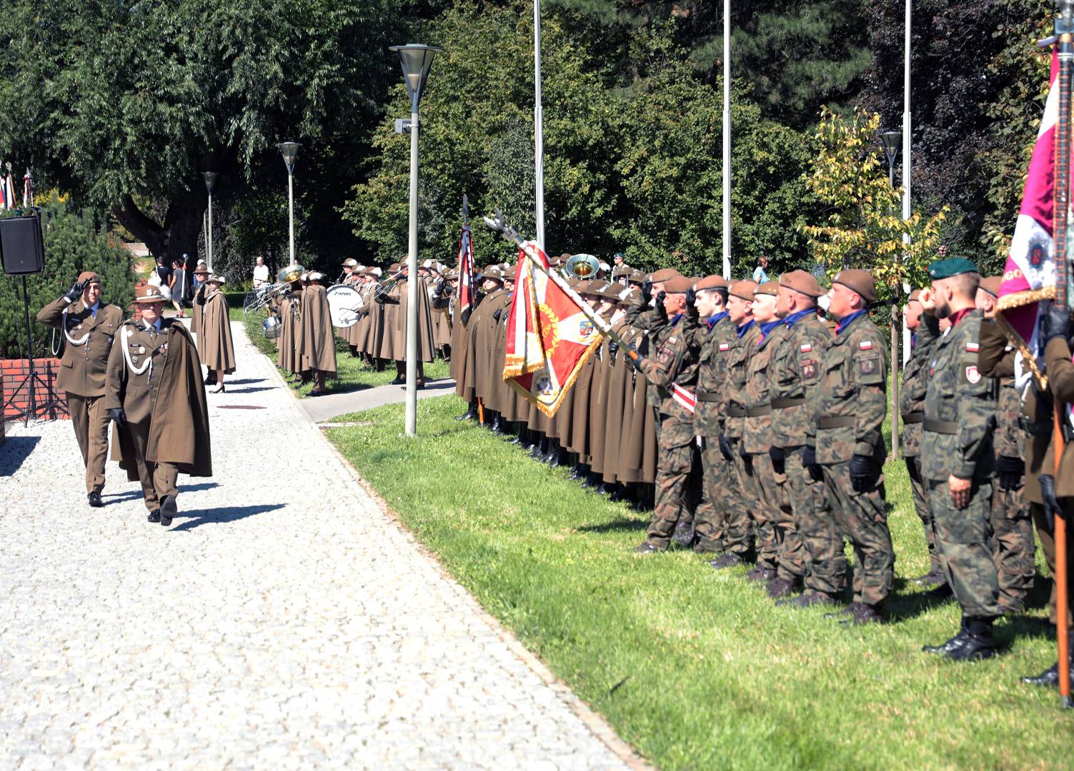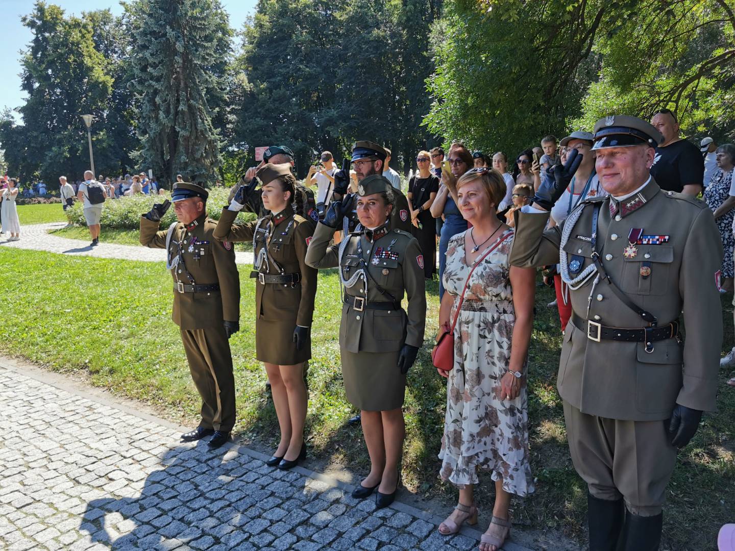 Po zakończeniu Najświętszej Ofiary uczestnicy obchodów udali się do rzeszowskiego Parku Jedności Polonii z Macierzą. Tam od godziny 11.00 przed Pomnikiem generała Władysława Sikorskiego miała miejsce kolejna część uroczystości. Zaczęło ja oddanie hołdu sztandarom różnych instytucji oraz przywitanie przez komenderującego ceremonią podpułkownika Rafała Iwanka z 21 Brygady Strzelców Podhalańskich. Potem nastąpiło odegranie prze orkiestrę wojskową i odśpiewanie w wykonaniu zgromadzonych hymnu państwowego. Towarzyszyło temu podniesienie flagi państwowej. Gdy to dokonało się, obecni w rzeczonym parku na obchodach wymienionego wyżej święta państwowego wysłuchali przemówień. Głos zabrali kolejno: ppłk Rafał Iwanek, wojewoda podkarpacki dr Ewa Leniart, reprezentujący urząd marszałkowski województwa podkarpackiego Jerzy Cypryś i prezydent Rzeszowa Konrad Fijołek. Wszyscy owi państwo podkreślili znaczenie wojska polskiego dla naszej ojczyzny, dziękując za wysiłek polskiego żołnierza na rzecz kraju. Po tym odbył się zwieńczony salwą honorową Apel Pamięci. Następnie poszczególne delegacje złożyły Wieńce przed pomnikiem gen. Sikorskiego. Orkiestra zagrała „Pieśń Reprezentacyjną Wojska Polskiego. Poszczególne pododdziały odprowadzono do miejsc zakwaterowania. Tym akcentem zakończono rzeszowskie obchody Święta Wojska Polskiego. Wzięli w nich udział kapłani diecezji rzeszowskiej, przedstawiciele władz państwowych i samorządowych, reprezentanci służb mundurowych oraz różnych instytucji. Kompanie honorowe wystawiły 21 Brygada Strzelców Podhalańskich i 3 Podkarpacka Brygada Obrony Terytorialnej. Jako, że historia i tradycja zobowiązuje w obchodach uczestniczyli również strzelcy ze Związku Strzeleckiego „STRZELEC” Józefa Piłsudskiego. Wystawili oni dwa poczty sztandarowe, a także dwie kompanie honorowe. Jedna z nich reprezentowała kompanię wsparcia ZS „S” JP, natomiast druga Jednostkę Strzelecką im. płk. Leopolda Lisa-Kuli w Rzeszowie. Obecni byli przedstawiciele dowództwa ZS „S” JP w osobach starszego inspektora ZS „S” JP Marka Strączka – dowódcy Południowo-Wschodniego Okręgu Strzeleckiego, dowodzącej JS 2021 im. płk. Leopolda Lisa-Kuli inspektor ZS „S” JP Barbary Gajewskiej, inspektora ZS „S” JP Henryka Klimka, zastępcy dowódcy JS 2021 im. płk. Leopolda Lisa-Kuli młodszego inspektora ZS „S” JP Michała Stocerza, młodszego inspektora ZS „S” JP Grzegorza Gajewskiego i chorążego ZS „S” JP Michała Urmana. Kadra wychowawczo-instruktorska ZS „STRZELEC” JP znalazła się w gronie delegacji składających wieńce. Ponadto strzelcy prężnie działali pod względem logistycznym, dbając o bezpieczeństwo uczestników rzeszowskich obchodów Święta Wojska Polskiego ANNO DOMINI 2023.