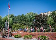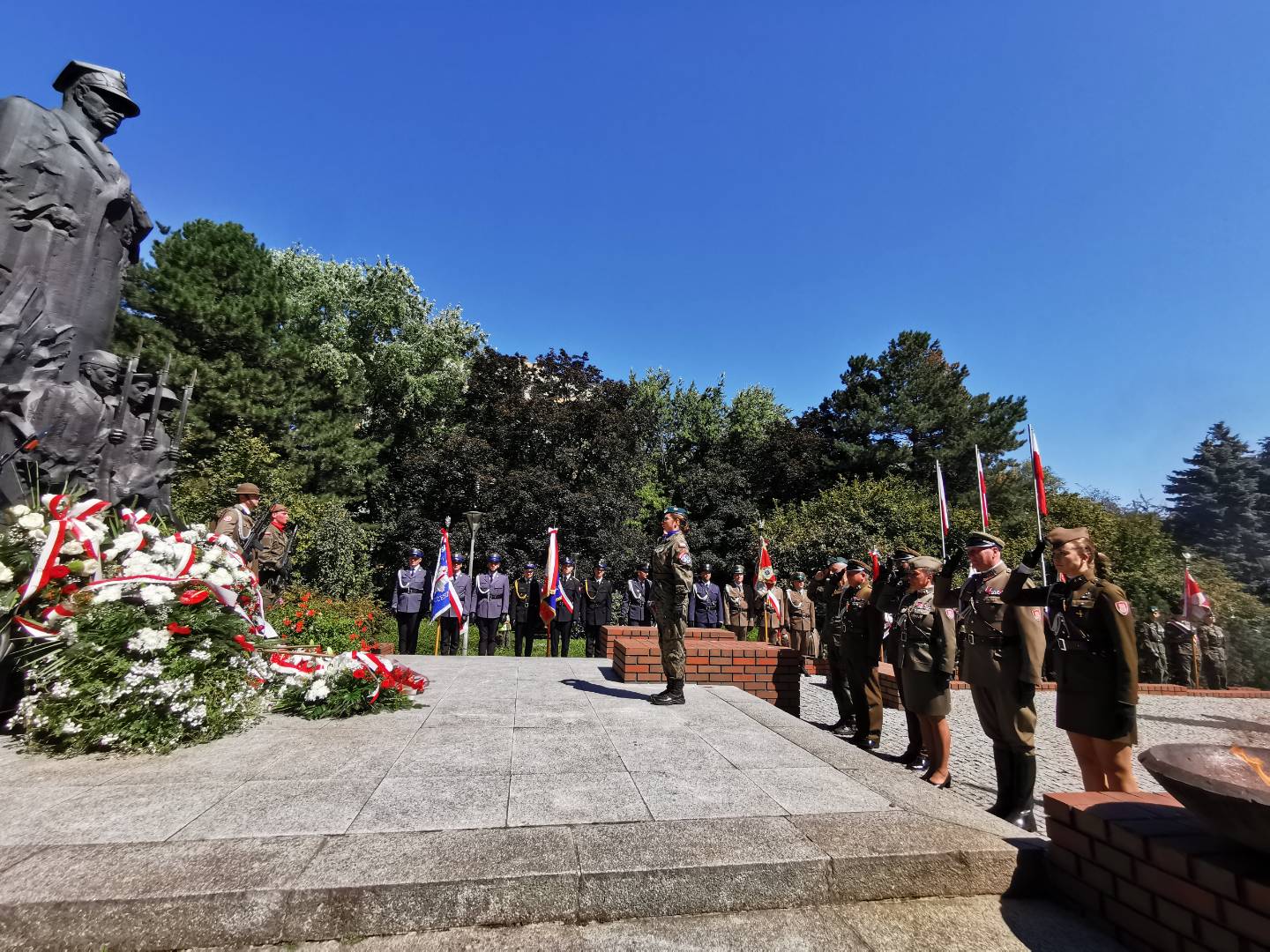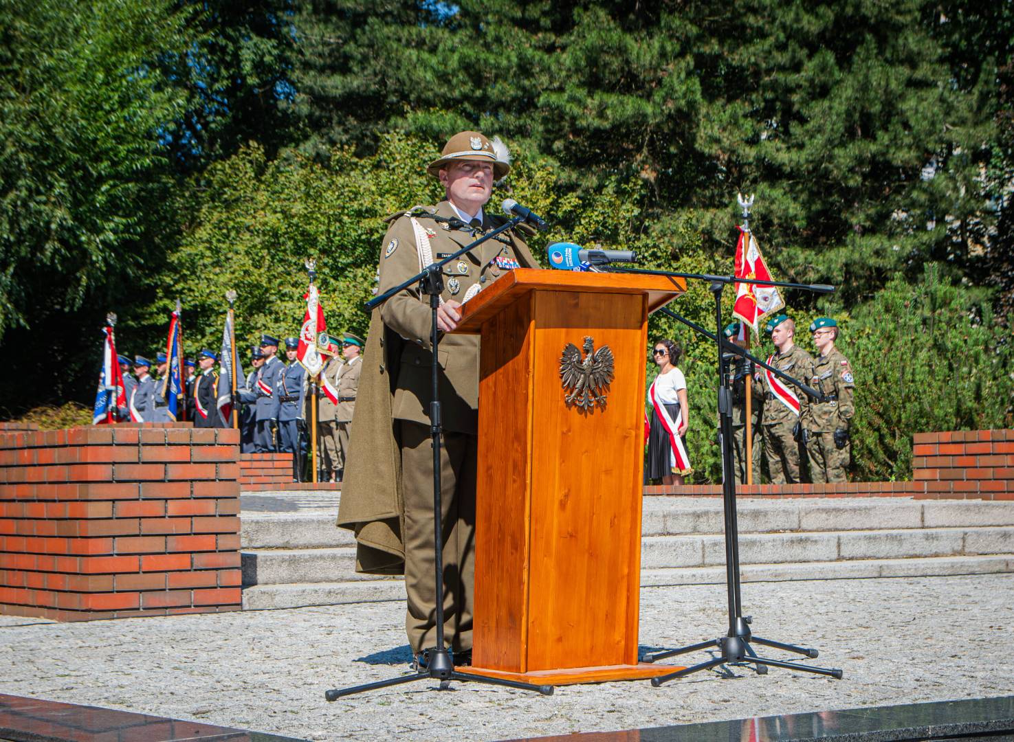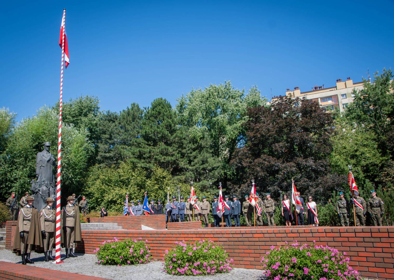 Po zakończeniu Najświętszej Ofiary uczestnicy obchodów udali się do rzeszowskiego Parku Jedności Polonii z Macierzą. Tam od godziny 11.00 przed Pomnikiem generała Władysława Sikorskiego miała miejsce kolejna część uroczystości. Zaczęło ja oddanie hołdu sztandarom różnych instytucji oraz przywitanie przez komenderującego ceremonią podpułkownika Rafała Iwanka z 21 Brygady Strzelców Podhalańskich. Potem nastąpiło odegranie prze orkiestrę wojskową i odśpiewanie w wykonaniu zgromadzonych hymnu państwowego. Towarzyszyło temu podniesienie flagi państwowej. Gdy to dokonało się, obecni w rzeczonym parku na obchodach wymienionego wyżej święta państwowego wysłuchali przemówień. Głos zabrali kolejno: ppłk Rafał Iwanek, wojewoda podkarpacki dr Ewa Leniart, reprezentujący urząd marszałkowski województwa podkarpackiego Jerzy Cypryś i prezydent Rzeszowa Konrad Fijołek. Wszyscy owi państwo podkreślili znaczenie wojska polskiego dla naszej ojczyzny, dziękując za wysiłek polskiego żołnierza na rzecz kraju. Po tym odbył się zwieńczony salwą honorową Apel Pamięci. Następnie poszczególne delegacje złożyły Wieńce przed pomnikiem gen. Sikorskiego. Orkiestra zagrała „Pieśń Reprezentacyjną Wojska Polskiego. Poszczególne pododdziały odprowadzono do miejsc zakwaterowania. Tym akcentem zakończono rzeszowskie obchody Święta Wojska Polskiego. Wzięli w nich udział kapłani diecezji rzeszowskiej, przedstawiciele władz państwowych i samorządowych, reprezentanci służb mundurowych oraz różnych instytucji. Kompanie honorowe wystawiły 21 Brygada Strzelców Podhalańskich i 3 Podkarpacka Brygada Obrony Terytorialnej. Jako, że historia i tradycja zobowiązuje w obchodach uczestniczyli również strzelcy ze Związku Strzeleckiego „STRZELEC” Józefa Piłsudskiego. Wystawili oni dwa poczty sztandarowe, a także dwie kompanie honorowe. Jedna z nich reprezentowała kompanię wsparcia ZS „S” JP, natomiast druga Jednostkę Strzelecką im. płk. Leopolda Lisa-Kuli w Rzeszowie. Obecni byli przedstawiciele dowództwa ZS „S” JP w osobach starszego inspektora ZS „S” JP Marka Strączka – dowódcy Południowo-Wschodniego Okręgu Strzeleckiego, dowodzącej JS 2021 im. płk. Leopolda Lisa-Kuli inspektor ZS „S” JP Barbary Gajewskiej, inspektora ZS „S” JP Henryka Klimka, zastępcy dowódcy JS 2021 im. płk. Leopolda Lisa-Kuli młodszego inspektora ZS „S” JP Michała Stocerza, młodszego inspektora ZS „S” JP Grzegorza Gajewskiego i chorążego ZS „S” JP Michała Urmana. Kadra wychowawczo-instruktorska ZS „STRZELEC” JP znalazła się w gronie delegacji składających wieńce. Ponadto strzelcy prężnie działali pod względem logistycznym, dbając o bezpieczeństwo uczestników rzeszowskich obchodów Święta Wojska Polskiego ANNO DOMINI 2023.