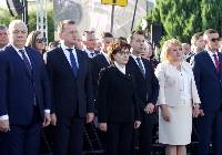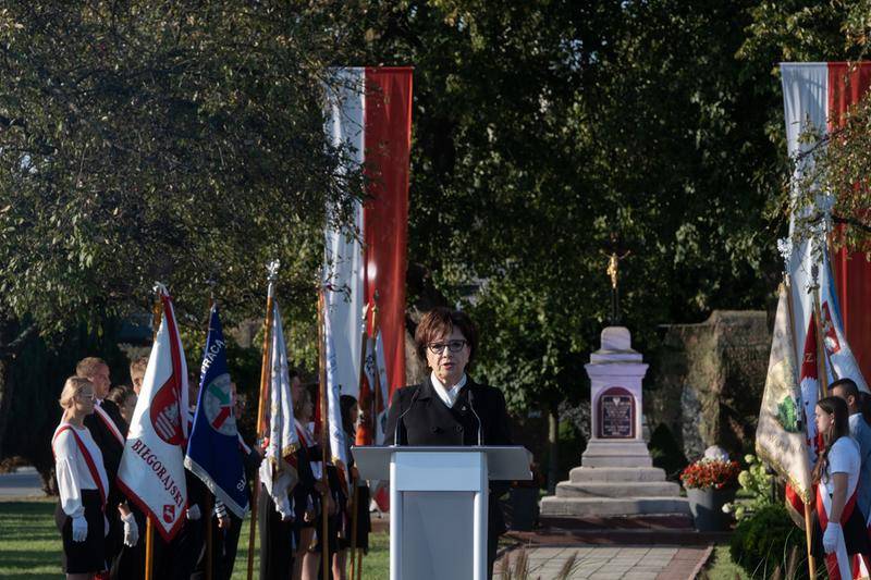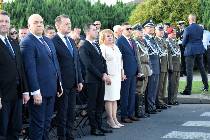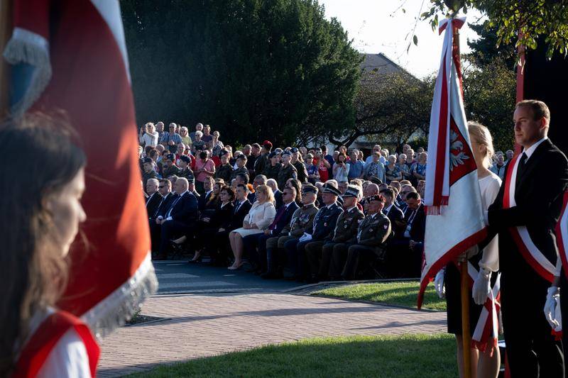 Na obchody rocznicowe przybyli przedstawiciele władz państwowych. Reprezentowali je, m. in.: pani Elżbieta Witek – Marszałek Sejmu Rzeczypospolitej Polskiej, pan Jacek Sasin – minister Aktywów Państwowych, pan Mariusz Błaszczak – minister Obrony Narodowej, a także kierujący Ministerstwem Edukacji i Nauki pan Przemysław Czarnek. Obecni byli posłowie na Sejm Rzeczypospolitej Polskiej oraz reprezentanci lokalnych władz samorządowych. Ponadto w uroczystościach wzięli udział wysokiej rangi przedstawiciele służb mundurowych. Obecne były delegacje szkół, Instytutu Pamięci Narodowej i innych instytucji. Na uroczystość przybyło wiele osób. Szczególne znaczenie miała obecność świadków wydarzeń lat 1939-1945. O właściwą oprawę zadbało wojsko. Ceremonię zaczęło złożenie meldunku pani marszałek sejmu przez dowódcę uroczystości o gotowości pododdziałów Wojska Polskiego oraz "STRZELCA". Następnie pani marszałek oddała honory sztandarom i przywitała zgromadzonych. Po tym podniesiono flagę państwową i przy akompaniamencie orkiestry wojskowej odśpiewano "Mazurka Dąbrowskiego". W dalszej części kolejno głos zabrali: pani marszałek Elżbieta Witek, pan minister Mariusz Błaszczak i pan minister Jacek Sasin. Warto nadmienić, iż pan Mariusz Błaszczak przeczytał zgromadzonym list prezesa Prawa i Sprawiedliwości – pana Jarosława Kaczyńskigo. Z wypowiedzianych przez występujących słów emanowało przesłanie o bohaterstwie i cierpieniu Polaków w czasie II wojny światowej, a także konieczności patriotycznej postawy odpowiedzialności za ojczyznę. W punkcie kulminacyjnym uroczystości miały miejsce: Apel Poległych, salwa honorowa oraz złożenie wieńców ku czci ofiar II wojny światowej. Ostatni jej akord stanowiło odegranie i odśpiewanie "Pieśni Reprezentacyjnej Wojska Polskiego", a także defilada pododdziałów. Nota bene tuż przed rozpoczęciem uroczystości zgromadzeni obejrzeli na telebimie wstrząsający film o okrucieństwie Niemców wobec Frampola w trakcie II wojny światowej.