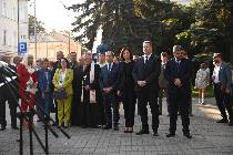 Odsłonięcie murala miało uroczysty charakter. Zgromadziło przedstawicieli duchowieństwa Kościoła rzymsko-katolickiego, władz państwowych, samorządowych i różnych instytucji. Najpierw obecni na nim wysłuchali okolicznościowych przemówień. Jako pierwszy zabrał głos minister edukacji i nauki. Stojący na czele tego resortu profesor Przemysław Czarnek wskazał na bohaterską postawę Rodziny Ulmów. Podkreślił przy tym, iż stanowiła ona symbol postępowania wszystkich Polaków, zamordowanych przez Niemców za pomoc okazaną Żydom w czasie II wojny światowej. Zwrócił też uwagę na to, jak wielki jest aspekt edukacyjny uroczystości wyniesienia Rodziny Ulmów do Chwały Ołtarzy. Po tym przemawiała pani wojewoda podkarpacki. Pełniąca tę godność doktor Ewa Leniart wskazała na znaczenie przykładu, jaki dali ówczesnym i obecnym Polakom Panstwo Wiktoria i Józef Ulmowie swoim życiem. Kolejną częścią tego podniosłego wydarzenia była modlitwa, której przewodniczył ksiądz biskup pomocniczy archidiecezji przemyskiej – Stanisław Jamrozek. Wraz z nim przybył na uroczystośc odsłonięcia muralu ksiądz biskup Jan Wątroba – ordynariusz diecezji rzeszowskiej. Po modlitwie odsłonięto mural. Dokonali tego: minister Przemysław Czarnek, wojewoda podkarpacki Ewa Leniart i wiceprezydent Rzeszowa Krystyna Stachowska. Ten punkt uroczystości był zarazem zwieńczeniem jej. Okrasiła to wydarzenie wczesnojesienna, acz piękna, słoneczna pogoda.
