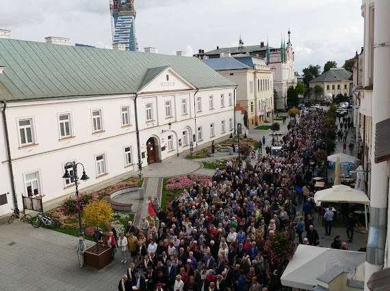 Tak było 1 października w Rzeszowie. W tymże mieście wierni zgromadzili się przy Krzyżu-Pomniku Ofiar Komunizmu. Gdy wybiła 15.00 – Godzina Miłosierdzia Bożęgo, rozbrzmiały słowa Koronki do Miłosierdzia Bożego. Uczestnicy modlitwy wypowiadali je przesuwając paciorki trzymanych w dłoniach różańców. Natępnie ruszyli w procesji. Podążając jej trasą wiodącą spod Krzyża-Pomnika Aleją Lubomirskich, ulicą 3-go Maja, przez Plac Farny do Bazyliki Mniejszej Mtki Bożej Rzeszowskiej, odmawiali różaniec. Jako, że czynili to w niedzielę – dzień będący pamiątką Zmartwychwstania Panskiego, rozważali Tajemnice Chwalebne. Modlitwie przewodniczyli kapłani diecezji rzeszowskiej. Wśród nich byli księża biskupi: Kazimierz Górny – pierwszy ordynariusz diecezji rzeszowskiej w jej historii, a także obecny ordynariusz tejże diecezji – Jan Wątroba. Warto nadmienić, iż na przedzie procesji, szli niosąc krzyż członkowie Bractwa Świętego Józefa. Obok nich podązali młodzi ludzie z pięknym różańcem o okazałych rozmiarach. W tym "Różańcu Ulicami Rzeszowa" uczestniczyły również siotry zakonne.