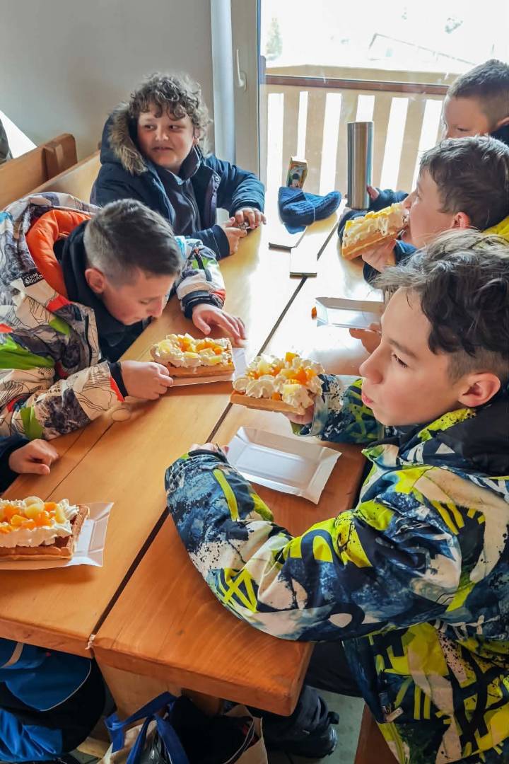 Byli też tacy, którzy śmigali po stoku jak profesjonaliści Podczas przerwy nie zabrakło pysznego jedzenia , które dodało energii i wzmocniło siły przed dalszą jazdą.
