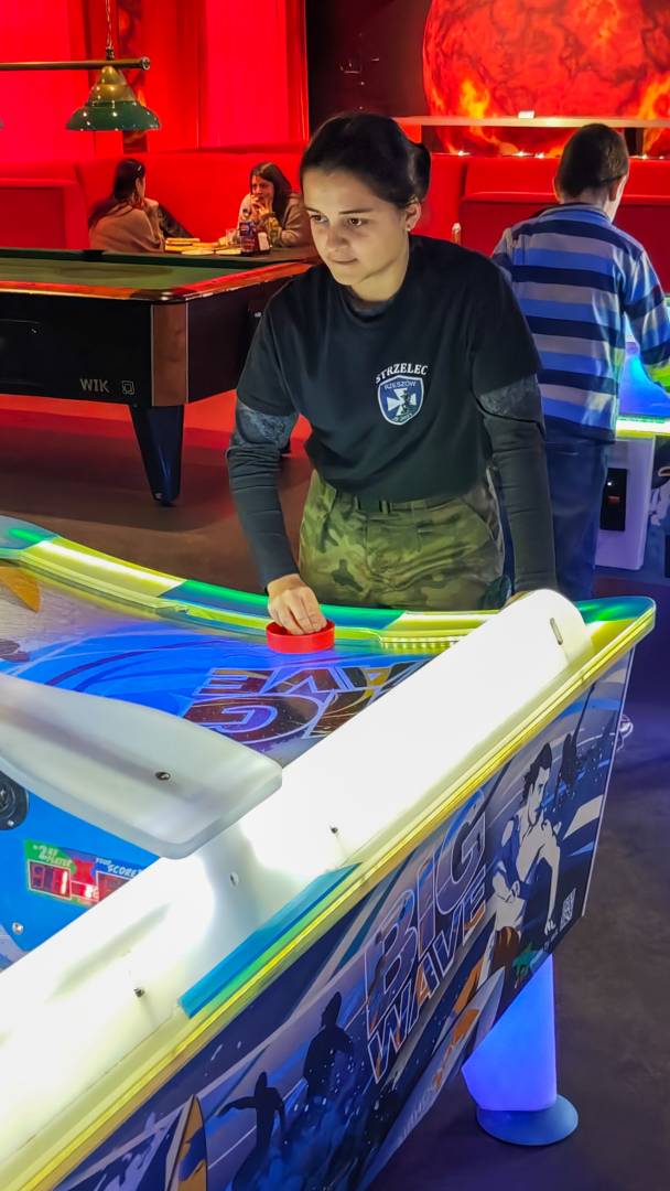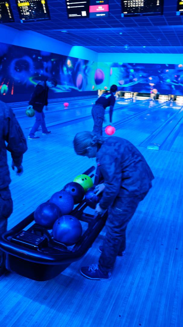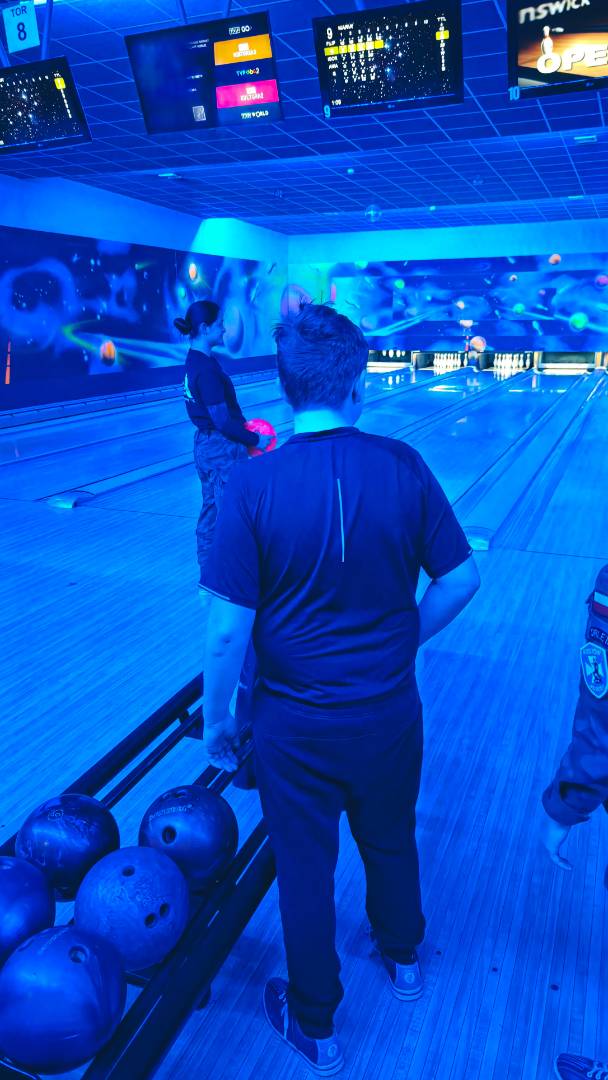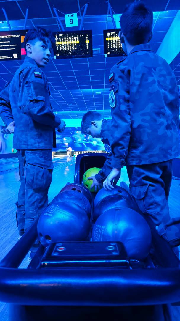 Kolejnym punktem programu była wizyta w kręgielni. Tam Orlęta mogły spróbować swoich sił na torach, rywalizując w przyjaznej atmosferze i doskonaląc koordynację ruchową. Radości i śmiechu nie brakowało – każdy celny rzut nagradzany był gromkimi brawami. Oprócz gry w kręgle odbyły się również zabawy ruchowe, które pozwoliły spożytkować energię i jeszcze bardziej zintegrować uczestników.